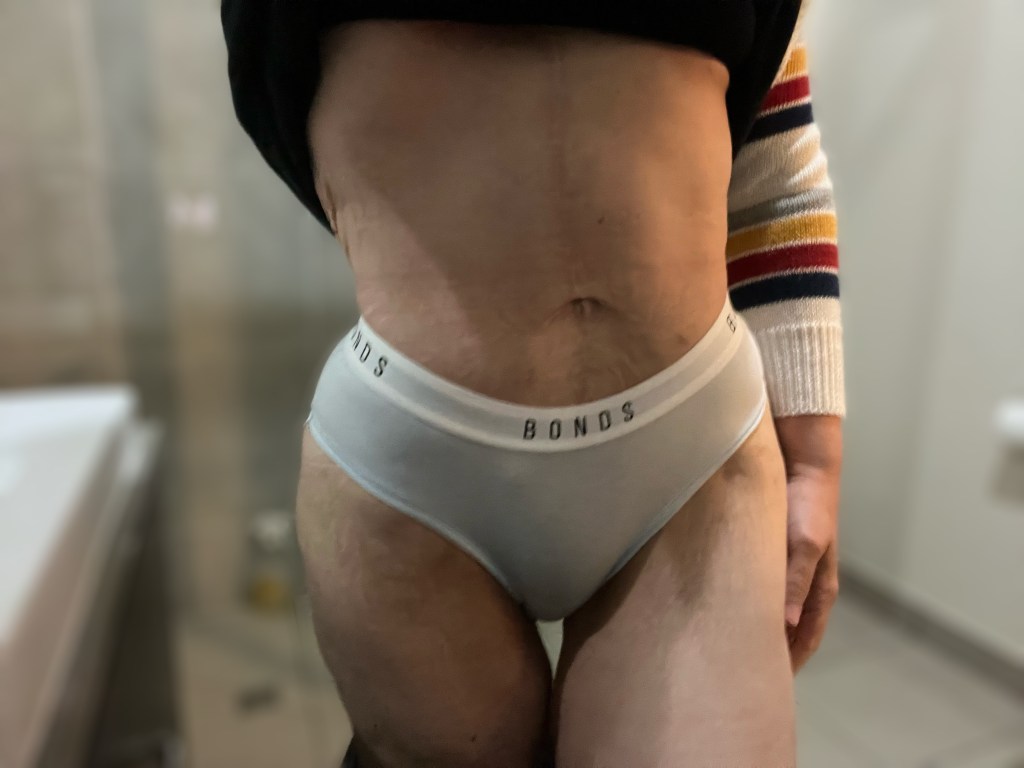 I thought I loved this pic then I realised that I could see my excess back skin creeping around and I started to pick at every single other fault and flaw I could see. I did that for about 5 minutes until I made myself nearly cry and then I just stopped! I just made myself STOP for a minute and gave myself a reality check! I’m a nearly 45 year old woman with 5 children, who has lost 2 thirds of my body weight. I have had 28 surgeries in my life and overcome a hell of a lot of things that others never see so I am going to refuse to allow myself to be put down ….. ESPECIALLY by my own internal voice!! I am never going to be perfect and thank fuck for that, who needs that kind of pressure!! so a great big ole finger to you internal mean girl in my head you can shut up tonight coz I’ll be over here listening to my hype girl! She knows that we have totally got this next phase in our journey! I would love to know what you do to get co trol of your self talk xx